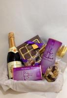 The hamper consists of one 750ml sparkling non-alcoholic drink, one 125g Belgian milk chocolate selection box, one 200g tube of clotted cream shortbread biscuits, 0ne100g Belgian chocolate bar, one 100g bag of mixed dried fruits and one 100g bag of butter toffees.