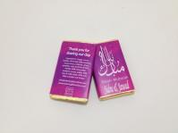 A beautiful pink/purple design with a delicate paisley pattern running along the top and bottom of the wrapper. The message reads Nikah Mubarak in Arabic. and Thank you for sharing our day on the back. This design is also available in Shaadi Mubarak, Mehndi Mubarak etc.