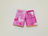 Each bar measures 55mmx35mm3mm and weighs 10g, made from quality Belgian milk chocolate and is available in gold or silver inner foil. MINIMUM ORDER 10