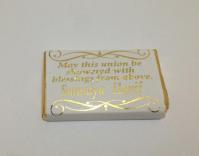 The pattern runs along the top and bottom with names/message sandwiched between it. The message on the favour reads May this union be showered with blessings from above. Followed by names required.